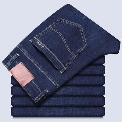 титульная страница > Мужская мода > Повседневные демисезонные мужские эластичные джинсовые брюки в классическом стиле прямого кроя