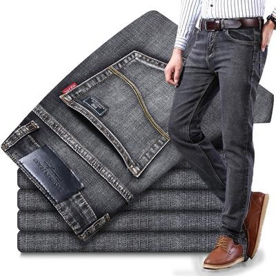 Повседневные демисезонные мужские эластичные джинсовые брюки в классическом стиле прямого кроя
