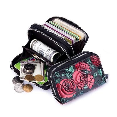 титульная страница > Сумки и чемоданы > Мода Кожа Женщины Держатель кредитной карты Кошелек Двойная молния Большая емкость 3D Роза Цветок Пе